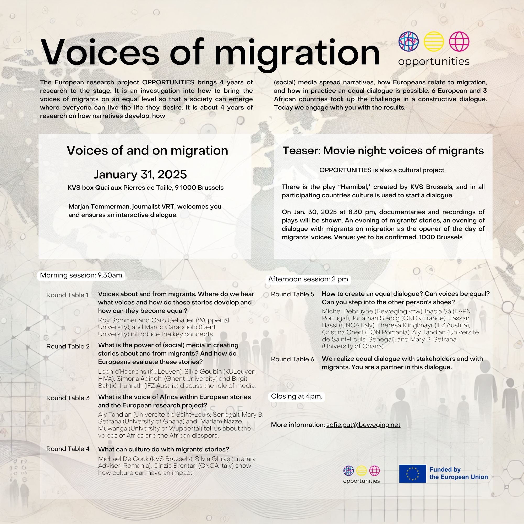 OPPORTUNITIES brings together migrants, citizens, and stakeholders on national, local, and regional levels in several African and European countries, encouraging them to listen to each other and to create shared narratives of migration.